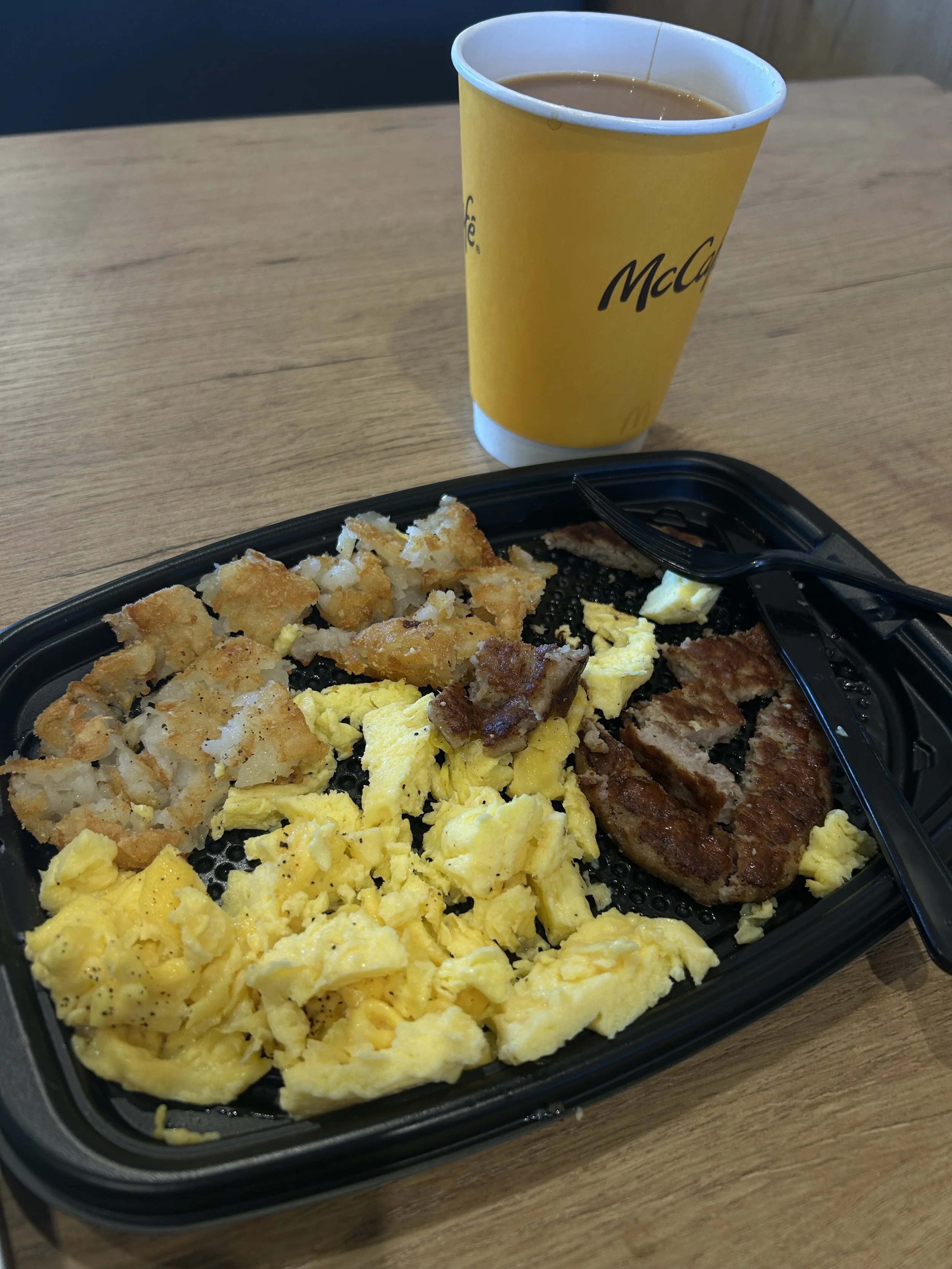 For some unknown reason I was craving McDonald’s Big Breakfast this morning - no biscuit, extra eggs. It’s a little cold and processed for sure - but it’s comfort food to me. The coffee is amazing. Better than Starbie’s.